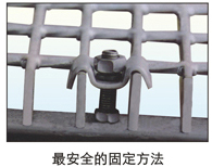 注:選擇哪種鋼格板安裝方法,由客戶根據(jù)現(xiàn)場實(shí)際情況選擇決定,安裝夾可根據(jù)客戶要求由我廠提供。用戶在鋼格板安裝固定完畢后,使用者要注意保養(yǎng)和維護(hù),如發(fā)現(xiàn)安裝夾松動(dòng),應(yīng)及時(shí)緊固。